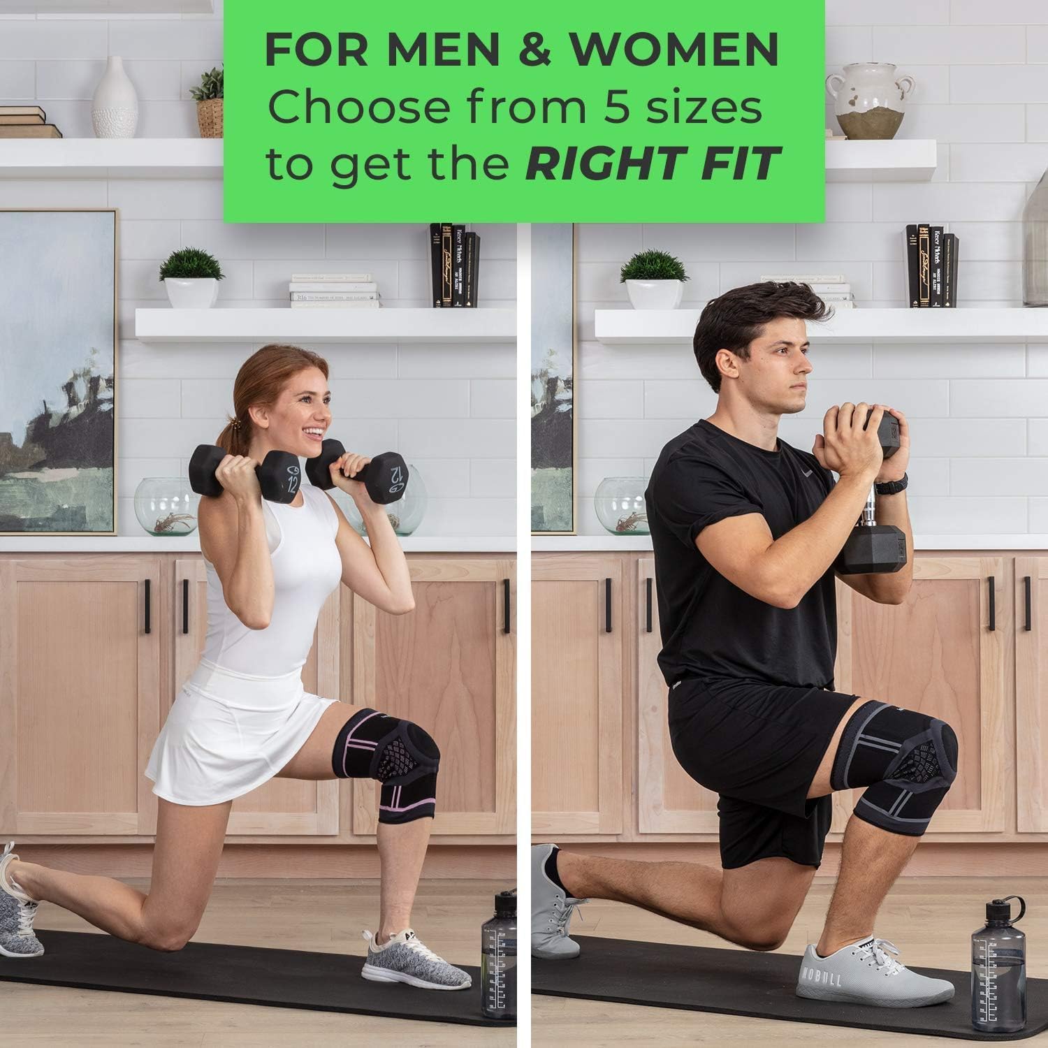 Our knee sleeve provides extra support and targeted compression with stabilizer bars and a patella gel pad, making it ideal for pain relief and injury recovery from conditions such as meniscus tears, ACL, PCL, MCL injuries, swelling, arthritis, bursitis, and tendonitis.